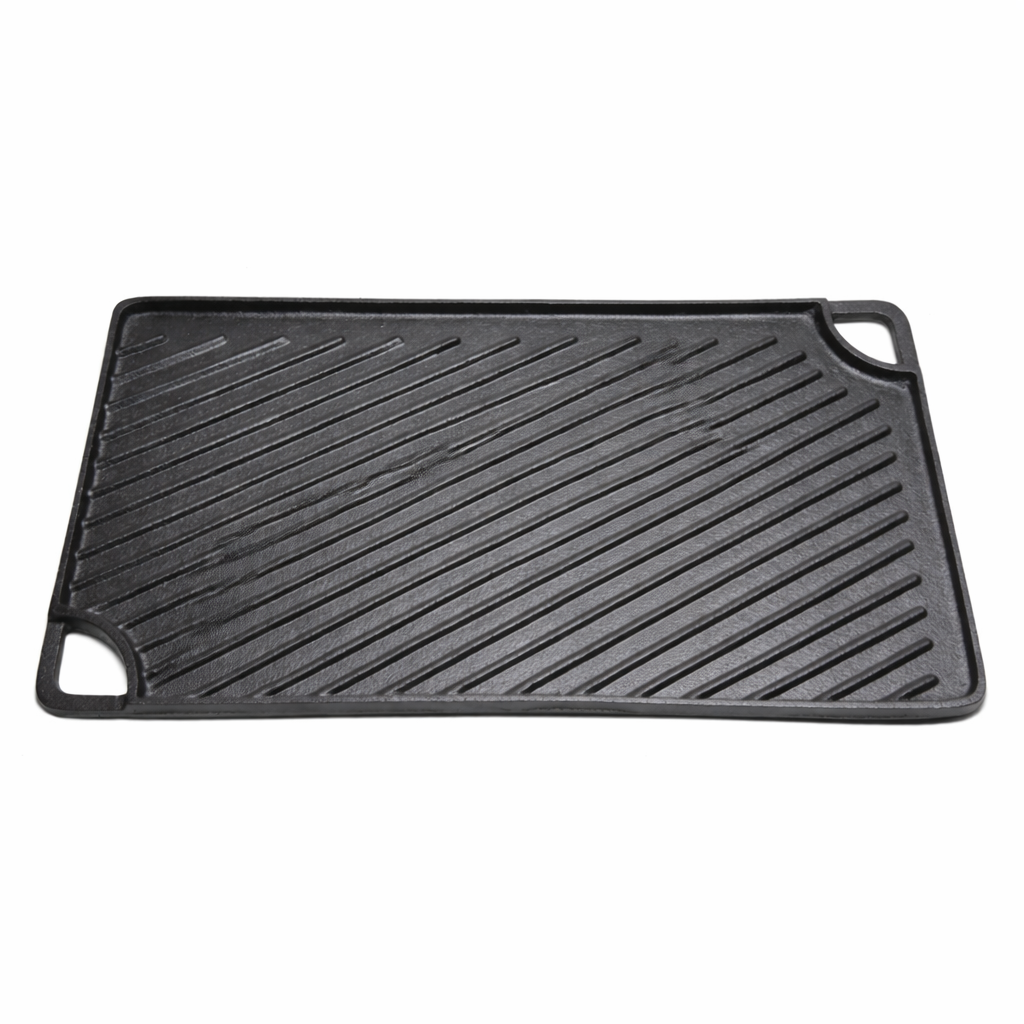 Διαθέτει διπλή επιφάνεια, μία λεία και μία με ραβδώσεις, προσφέροντας ευελιξία στο μαγείρεμα. Η λεία πλευρά είναι ιδανική για αυγά, λαχανικά, pancakes και θαλασσινά, ενώ η πλευρά με ραβδώσεις ενδείκνυται για κρέας, ψάρι και μπέργκερ, δημιουργώντας αυθεντικά σημάδια ψησίματος και επιτρέποντας την αποστράγγιση των περιττών λιπαρών.