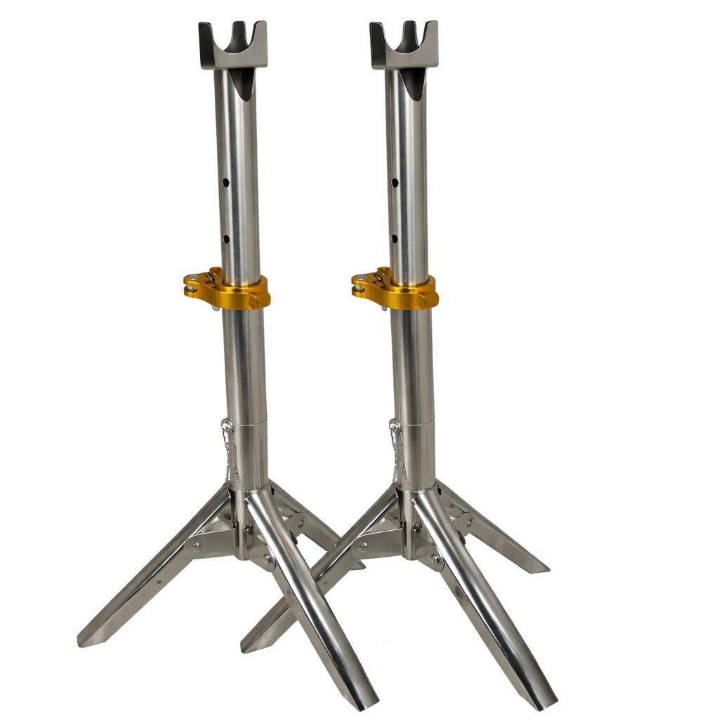 Οι τρίποδες διαθέτουν στιβαρή τρίποδη βάση που προσφέρει εξαιρετική σταθερότητα κατά τη διάρκεια του ψησίματος, ακόμα και με βαριά φορτία σούβλας. Το ύψος τους ρυθμίζεται εύκολα, με ελάχιστο ύψος 38 εκατοστά από το έδαφος και μέγιστο 53 εκατοστά, καλύπτοντας διαφορετικές ανάγκες ψησίματος και ύψους φωτιάς. Η ρύθμιση γίνεται μέσω τριών διαβαθμίσεων, σε συνδυασμό με πύρο ασφαλείας.
